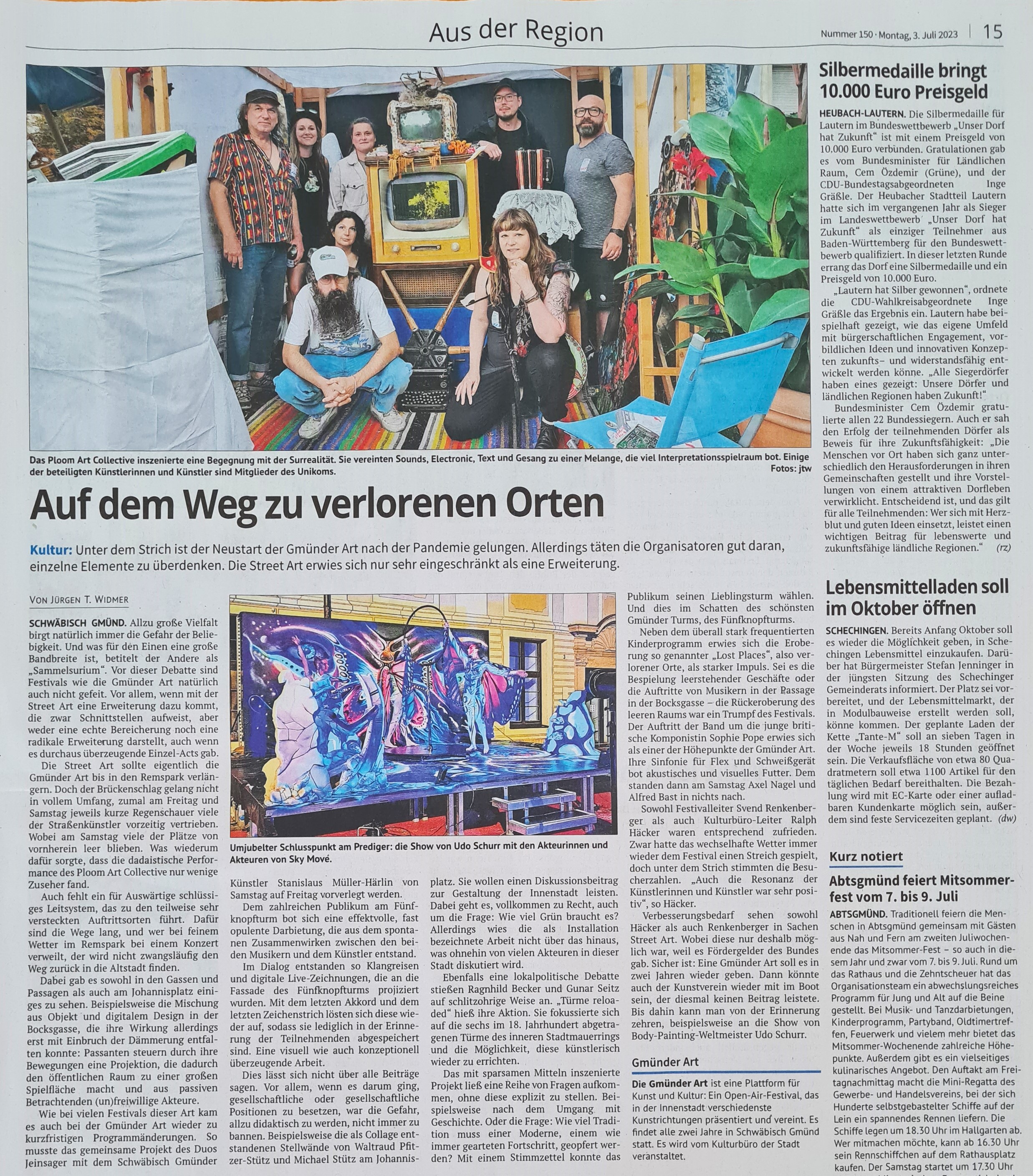 Crossover-Performance trifft auf Literatur, Sound und visuelle Kunst: Das vierstimmige Hörspiel des Autors Kwazz wird live gelesen und von Cristoforo atmosphärisch mit Sound untermalt. Parallel dazu erschafft Alex auf der Bühne eine Videocollage aus den Visuals von Kwazz, die sich in die großflächige Szenografie von Molyrokk einfügt. Das Ergebnis ist ein immersives Hörkunstwerk – kompositorisch und visuell verschachtelt, vielstimmig und überraschend, bei dem sich Klang, Text und Bild zu einer bühnenfüllenden Collage verweben.