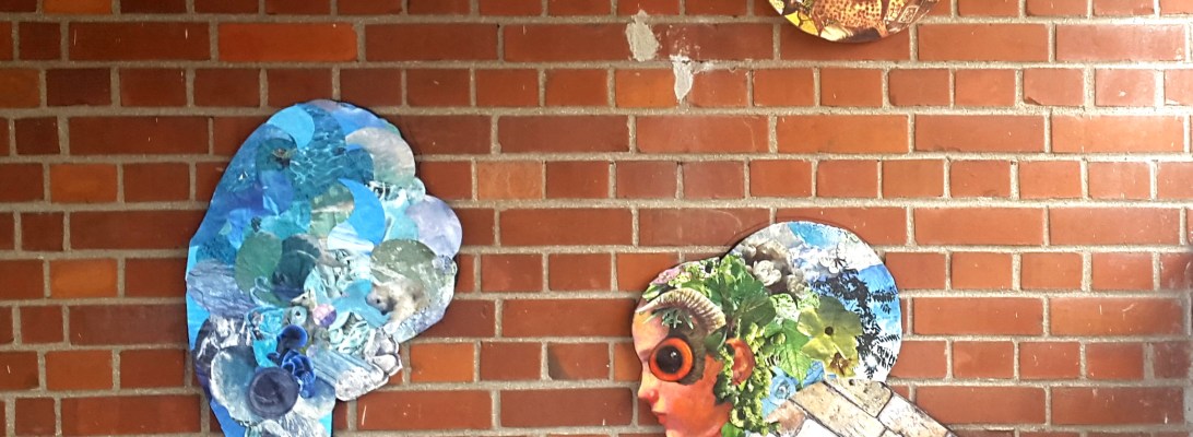 Meine erste Idee war: Ein Holzbrett an die Wand schrauben und darauf die Collage kleben. Aber Holz quillt im Regen auf. Das kann schief gehen. Vielleicht lackiertes Holz? Kann eventuell funktionieren. Aber so ein rechteckiges Brett? Mir schwebte eine etwas freiere Form vor: